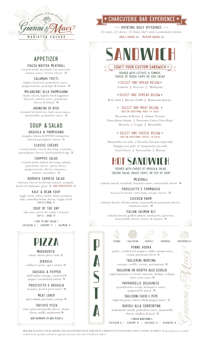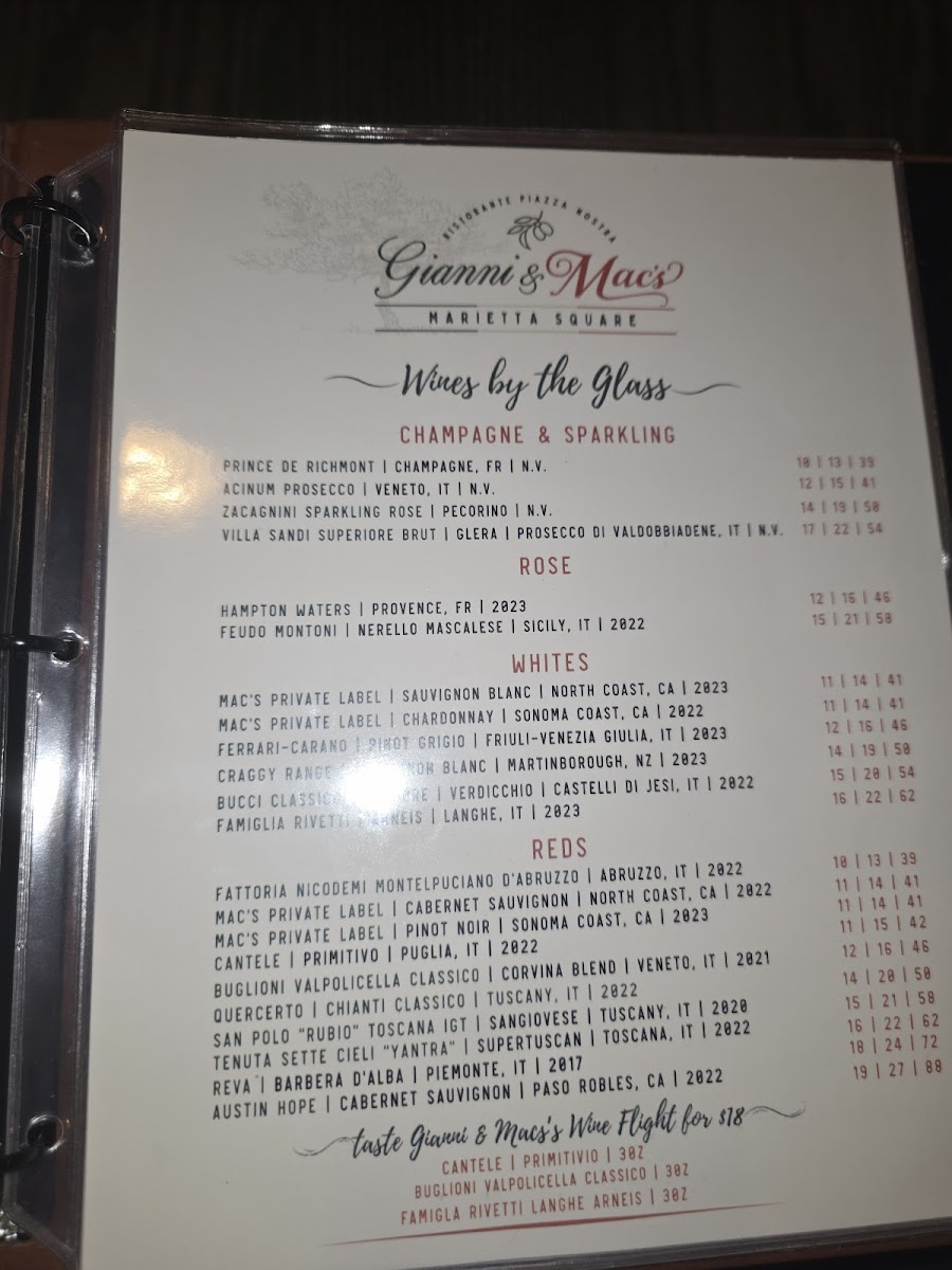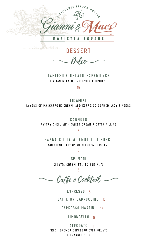 Gianni & Mac's Ristorante Menu