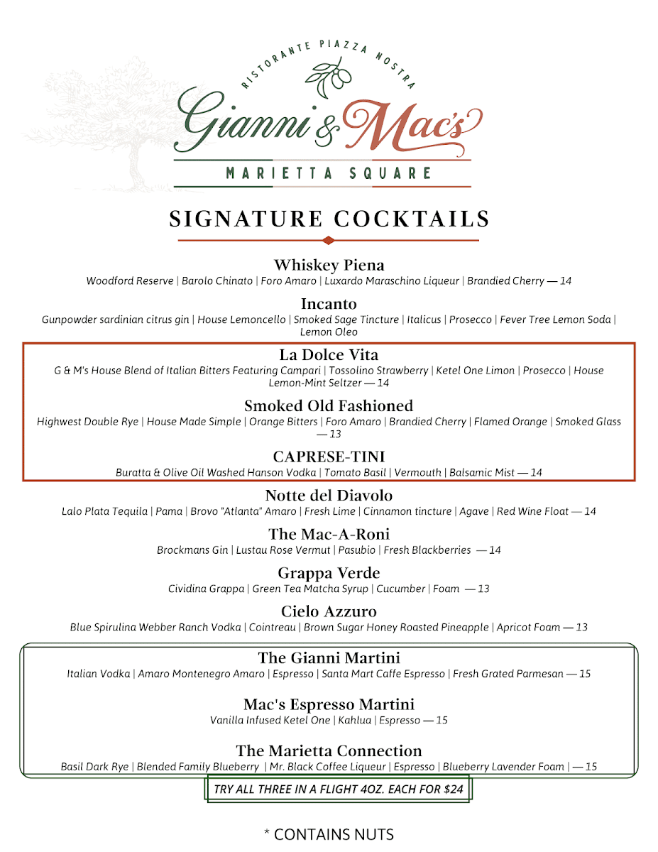 Overall, the menu at Gianni & Mac’s is designed to evoke a sense of familiarity and comfort, fitting seamlessly with the restaurant’s inviting décor and the casual yet refined dining experience it offers. Guests often find themselves drawn to the warm ambiance that complements the thoughtfully prepared food and drink choices.